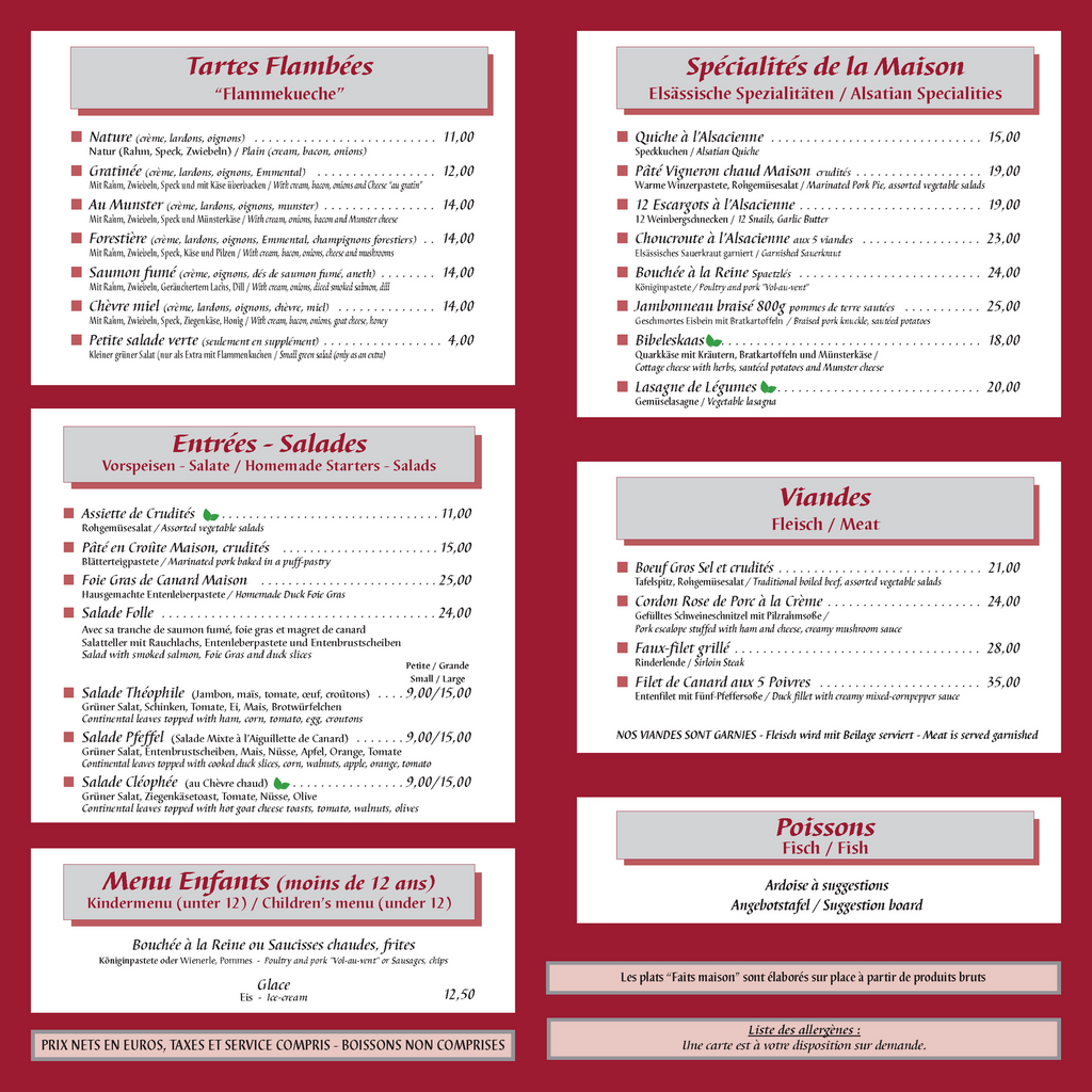 2026 Preise - Taxen und Bedienung eingriffen - Getränke nicht einbegriffen - Alle Preise sind in €uro - Alle Fleischgerichte mit Beilage